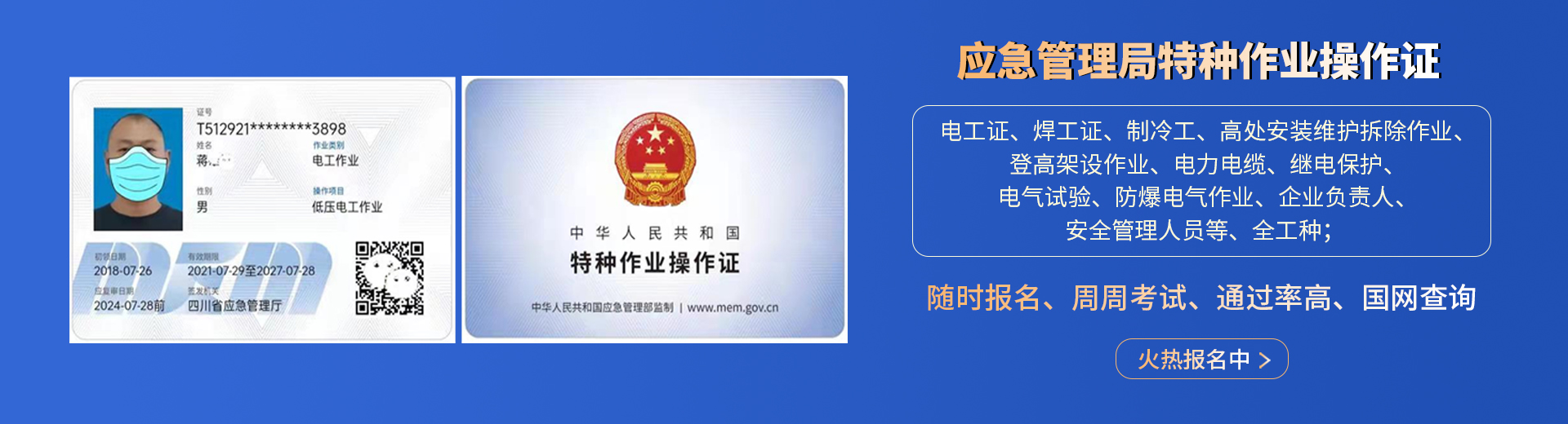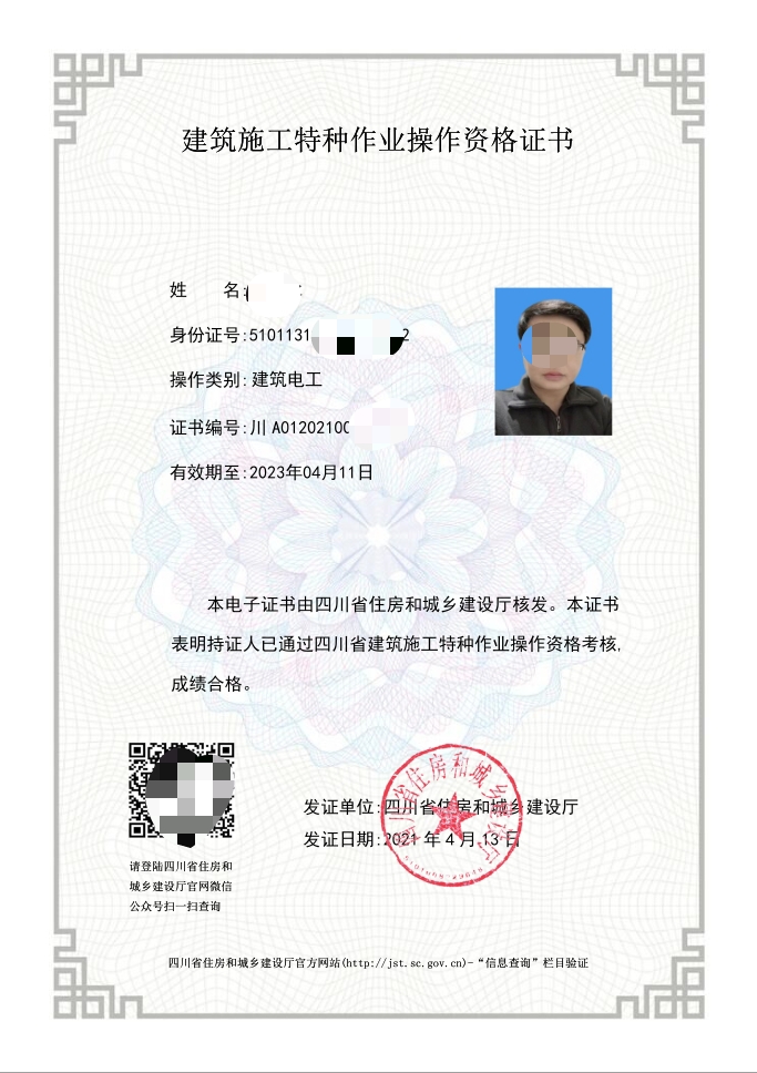 電工證,焊工證,登高架設(shè)證,高處安裝維護(hù)拆除證,電力電纜證,繼電保護(hù)證,電氣實驗證,防爆電器作業(yè)證,制冷工證,主要負(fù)責(zé)人證,安全管理人員證